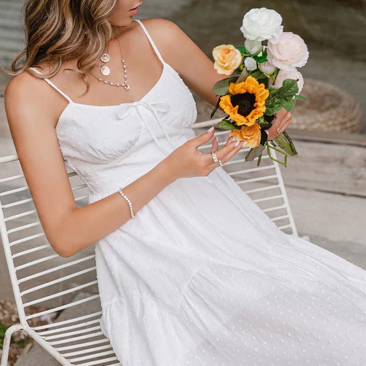 Explore the delicate balance between sophistication and the casual atmosphere of the island with our "Ibiza Lace Midi Dress". This dress embodies the essence of Ibiza's bohemian chic with its beautifully detailed lace details and elegant midi length. Perfect for sun-drenched days on the island, elegant garden parties or as a romantic choice for evening strolls along the beach, this lace dress brings a touch of island glamor to any occasion.