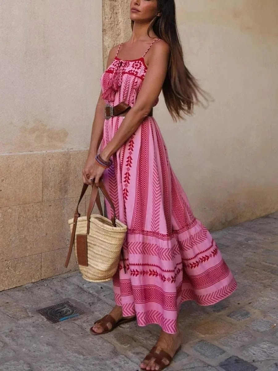Add a touch of elegance to your wardrobe with our pink spaghetti strap maxi dress . This gorgeous dress is perfect for any occasion, from a summer wedding to a night out with friends. Made of high-quality, breathable fabrics, this dress will keep you comfortable all day long.